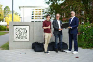 Bei der Übergabe waren Schulleiter Dr. Martin Widmann und IT-Administrator Samuel Fleig anwesend. „Dank der Spende können wir einen weiteren Raum vollständig mit Laptops ausstatten. Das ist ein echter Gewinn für unseren Informatikunterricht und alle Klassen, die digital arbeiten möchten“, so Fleig.
