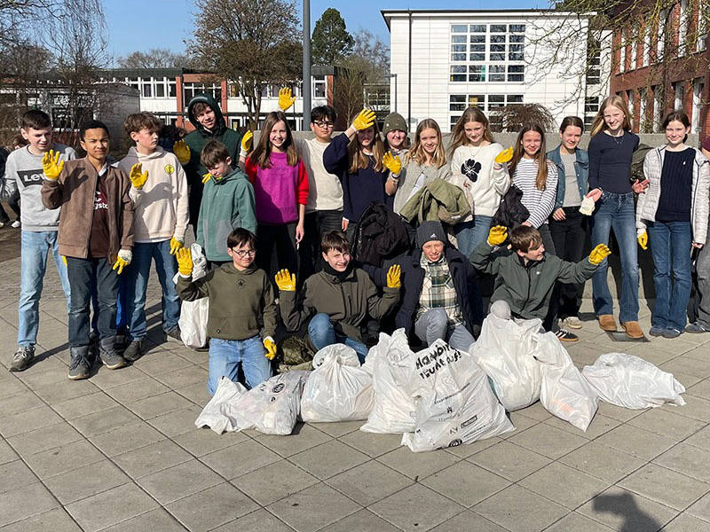 Heute hieß es für die Klasse 7A: Handschuhe an statt Atlanten raus! Gemeinsam mit Frau Keßler haben wir an der Aktion „Hamburg räumt auf!“ teilgenommen und uns zusammen mit dem Quartierstreff im Petunienweg 64, Anwohnerinnen und Anwohnern sowie freiwilligen Helfern der Schiffszimmerer Genossenschaft auf Müllsuche begeben. In vier Gruppen aufgeteilt machten wir uns auf den Weg durch die Nachbarstraßen. Schnell wurde klar: Rund um den Nahkauf wartete die größte Herausforderung auf uns. Besonders beeindruckend war das Ergebnis einer Gruppe, die unglaubliche 320 Zigarettenstummel einsammelte – ein echter Rekord! Neben viel Plastikmüll fanden wir außerdem zahlreiche Überreste von Silvesterböllern und sogar eine alte Baustellenlampe, die wohl schon länger auf ein Comeback gewartet hatte. Zum Glück spielte auch das Wetter mit: Bei warmem Sonnenschein machte das Sammeln gleich doppelt so viel Spaß. Unterwegs freuten sich viele Bewohnerinnen und Bewohner über unseren Einsatz und bedankten sich persönlich bei uns. Das hat zusätzlich motiviert! Als Belohnung warteten am Ende Kuchen und Getränke im Quartierstreff auf uns, die nach getaner Arbeit besonders gut schmeckten.