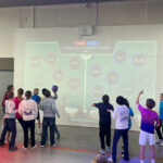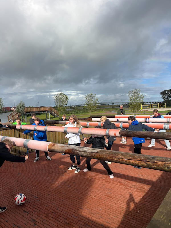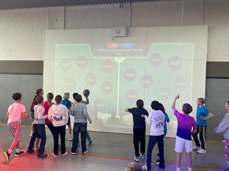 Der Dienstag stand ganz im Zeichen des Sports. Wir spielten Fußball, Völkerball und „Squair in the air“. Zum Mittagessen gab es Backfisch mit Pommes, was allen sehr gut schmeckte. Danach spielten wir „Zielscheibe“: Die Klasse wurde in sechs Teams aufgeteilt, die sich jeweils in einer Reihe aufstellten. Nacheinander warfen wir Bälle auf eine Zielscheibe an einem großen Whiteboard; in jeder Runde schied ein Team aus, bis am Ende das Siegerteam feststand. Danach gab es dort noch weitere lustige Spiele.