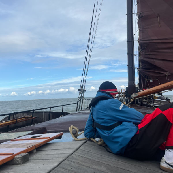 Am Mittwoch segelten wir zum ersten Mal los. Unser Ziel war Terschelling, eine Insel etwa vier Stunden entfernt von Harlingen. Sobald wir den Hafen verlassen hatten, fiel uns auf, dass uns trotz der heftigen Wellen das Segeln sehr viel Spaß machte und uns als kleine Gruppe auch um einiges stärkte. Zum Beispiel mussten wir gemeinsam das Segel setzen und uns gegenseitig anfeuern, wenn wir es hochzogen. Die Fahrt selbst war trotz des starken Winds und des kalten Wetters sehr angenehm und entspannt. Zusätzlich durften wir leckere Brownies vom Tag zuvor genießen. Wer leicht seekrank wurde, sollte sich allerdings nicht unters Deck trauen, dort schaukelt es ganz besonders und aufgrund der Schräglage des Schiffs läuft man herum, als wäre der Boden schief gelegt. In Terschelling angekommen probierten wir zuerst die stark von Herrn Herber empfohlenen Kibblinge. Das sind kleine Backfisch-Nuggets die mit Remoulade serviert werden. Obwohl sie sich in erster Linie wie normale Fischstäbchen anhörten, schmeckten sie ganz anders als alles, was wir je zuvor gegessen hatten. Den Rest des Tages nutzten wir, um den Ort zu erkunden und einen Aussichtspunkt zu besteigen, von wo man die ganze Stadt überblicken konnte. Am späten Nachmittag entschieden sich einige Schüler noch etwas Sport zu machen und sind gemeinsam in ein richtiges Fitnessstudio gegangen.