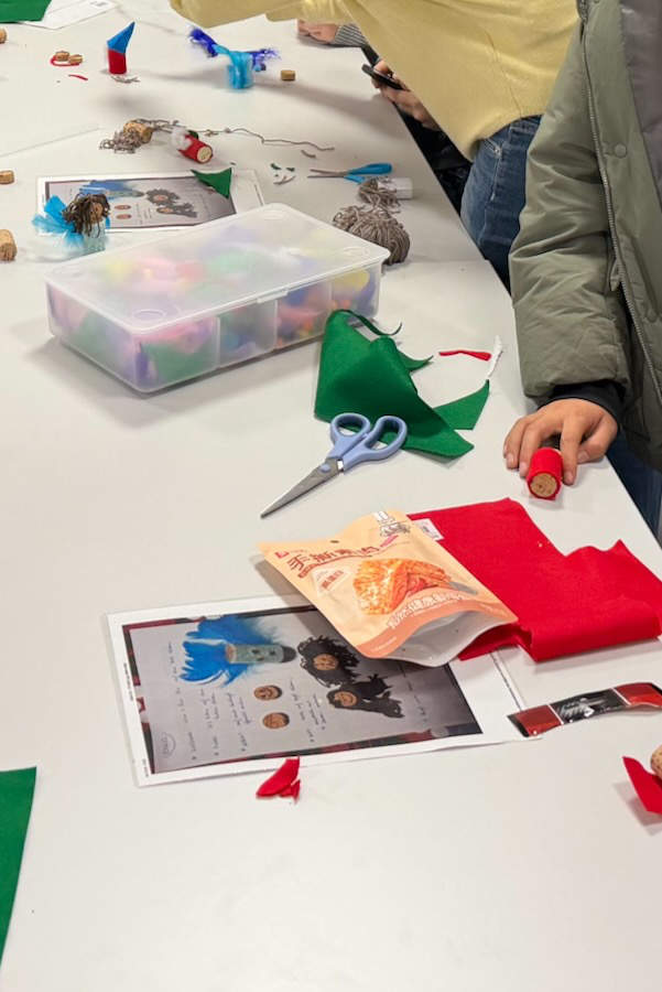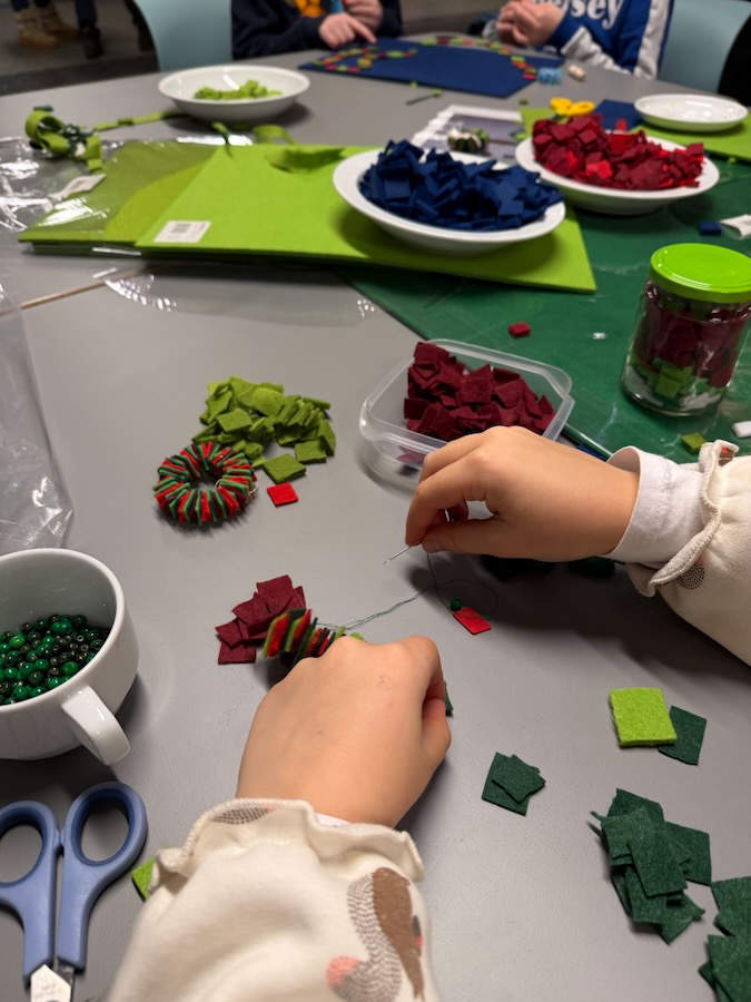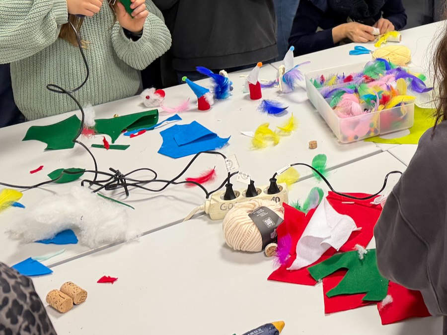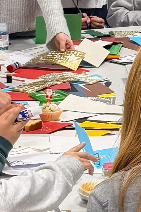 In beiden Räumen herrschte eine fröhliche, warme Atmosphäre: Überall wurde geschnitten, geklebt, gefaltet und dekoriert. Die Kinder probierten unterschiedliche Bastelangebote aus und nahmen kleine selbstgemachte Kunstwerke mit nach Hause. Im Hintergrund lief leise Weihnachtsmusik, die zusammen mit dem Lichterglanz für eine gemütliche Stimmung sorgte.
