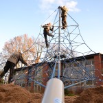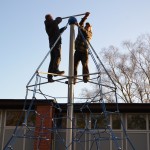 Eher für kleinere GOAner, obgleich selbst wirklich riesig, ist die neue Kletterspinne. Sie wächst derzeit hinter Trakt 4 bei den Trampolinen in den Himmel. Auch dazu heute noch eine kleine Bildergalerie – und ganz bald kann sie dann erklettert werden!