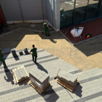 Um den Pavillon herum ist seit den Märzferien viel zu sehen: Nachdem zuerst der Asphalt aufgebrochen und die Stufen abgerissen wurden, entsteht nun langsam der neue Hof. Gestern wurden vor dem Pavillon erste Steine gelegt, weitere folgen in der kommenden Woche. Sehen Sie hier eine Bilderstrecke der bisherigen Arbeiten.