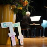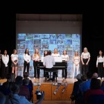 Eine musikalisch mit Klavier und Geige begleitete Diashow zeigte in 80 Aufnahmen, wie sich die Schule in den vergangenen 77 Jahren entwickelt hat: Gebäude kamen hinzu, der Schulhof veränderte sich, in den 1990er Jahren wurde die Aula gebaut, aktuell ist unser Pavillon im Bau, der in den kommenden Jahren für verschiedenste Zwecke das Schulleben bereichern wird. Über die Jahre konstant hingegen sind Leistungsbereitschaft der Schülerinnen und Schüler wie auch ein starkes Miteinander im Schulleben. Auch das zeigten die Bilder von Klassenreisen in den frühen Jahren des GOA, schulischem Miteinander in den 1970ern, Schulhofleben in den 1980ern und 1990ern und schließlich einer sich immer weiter entwickelnden Schule seit der Jahrtausendwende.