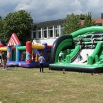 Auf dem ganzen Schulhof wurden Attraktionen aufgebaut: z.B. Hüpfburgen, Bubble Soccer, ein Kickerturnier oder auch ein Bobbycarrennen. Die S2 bot Wikingerschach an, der Schulverein hatte einen Stand, man konnte klettern, spielen, toben. Für das leibliche Wohl hatte Schweinske eine Küche aufgebaut und bereitete unter anderem Burger, Pommes, Waffeln und Currywurst zu. Schülerinnen und Schüler brieten Crêpes und schenkten Getränke aus.