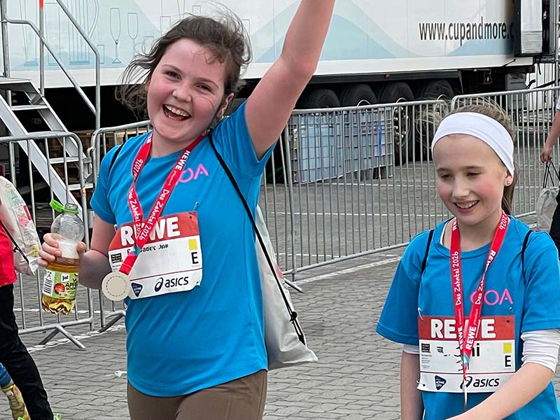 …tönte es am Samstag, den 25. April 2026, gegen 14:00 Uhr in der Messehalle! Nach einem gemeinsamen Aufwärmen begaben sich 44 Starter:innen des diesjährigen Zehntels zum Startpunkt. Bereits zu diesem Zeitpunkt waren sie Gewinner, denn das GOA hatte bereits Ende Januar bei der Verlosung der Startplätze gewonnen. Nun hatten 44 Starter:innen eine Strecke von 4,2 Kilometern vor sich: Einmal rund um Planten un Blomen! Angefeuert von vielen begeisterten Zuschauer:innen gaben sie ihr Bestes und liefen glücklich ins Ziel!