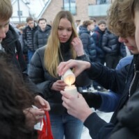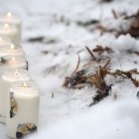 Am Ende stellte eine Gruppe aus unserer Klasse ewige Lichter am Gedenkstein auf, viele Besucherinnen und Besuchern legten Blumen dazu.