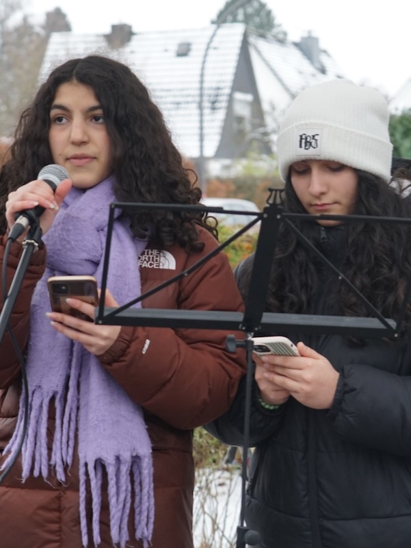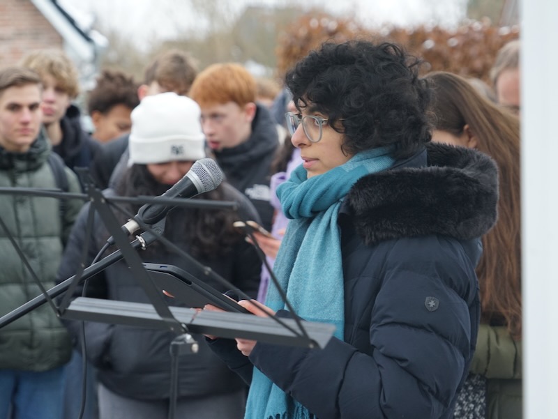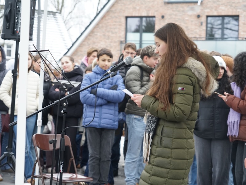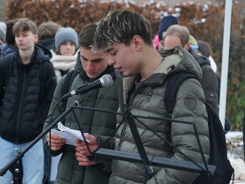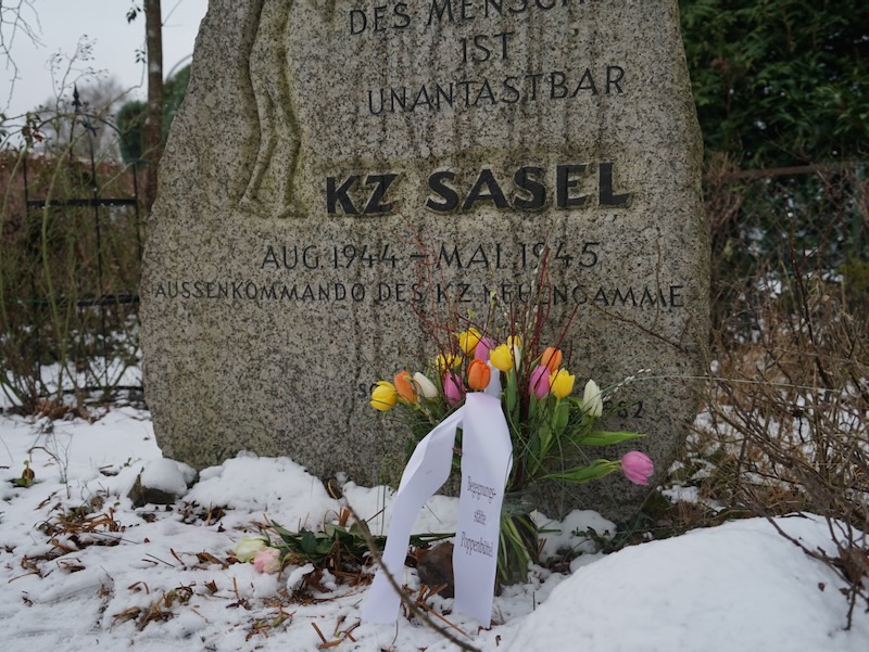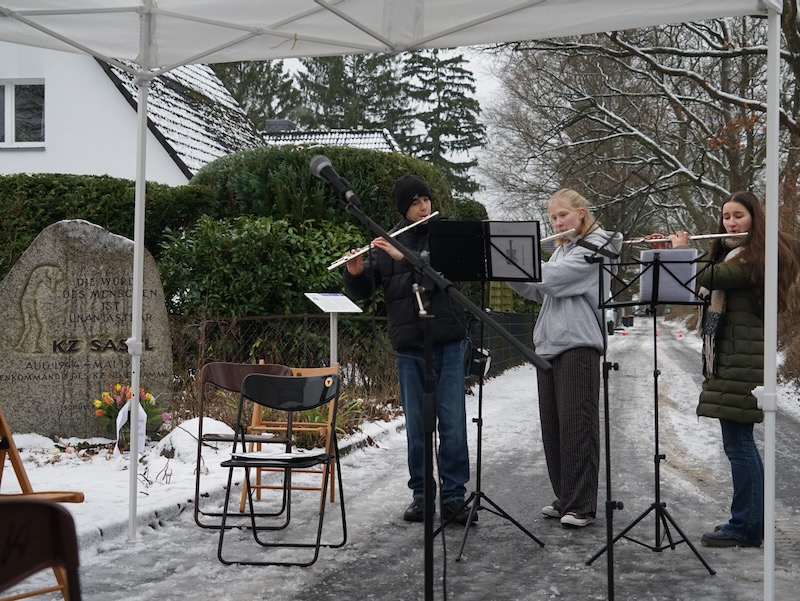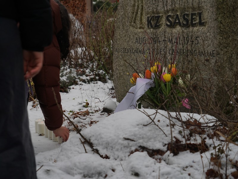 Wir, die Schülerinnen und Schüler des Gymnasiums Oberalster, hatten am Dienstag, den 27.01.2026, die Möglichkeit, gemeinsam mit vielen Mitfühlenden der Opfer des Nationalsozialismus am Gedenkstein des KZ Sasel zu gedenken. Durch unterschiedliche Beiträge konnten wir die Stunde der Trauer mit Informationen füllen, die an die damalige Zeit erinnerten. Dies war uns vor allem wichtig, da sich diese Zeit nicht wiederholen darf und man sich stets daran erinnern sollte.