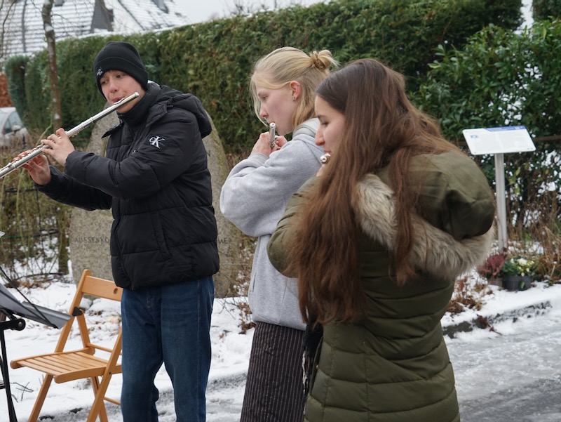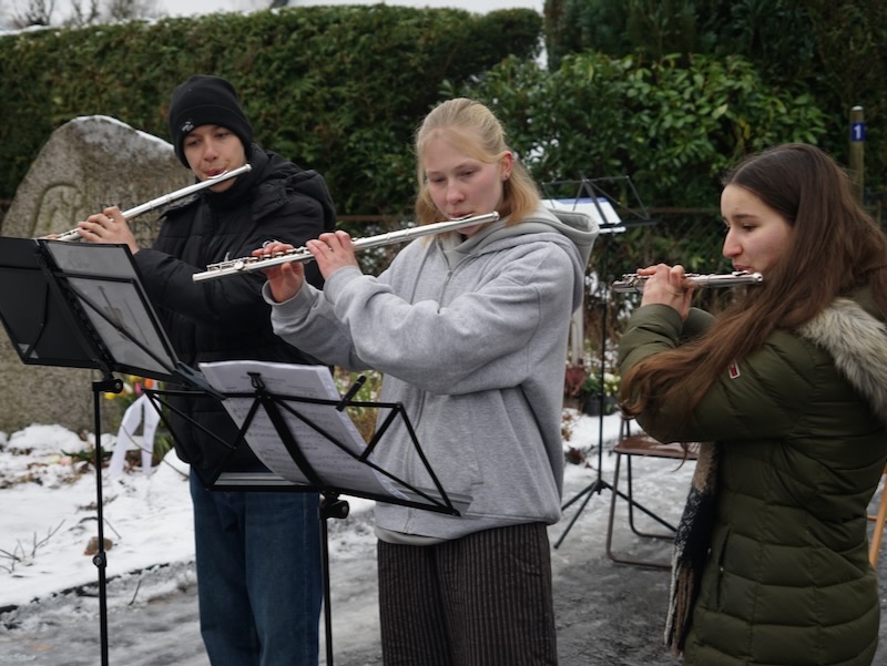 Dabei war es uns eine Ehre von Frau Eckel von der Stiftung Hamburger Gedenkstätten und Lernorte sowie von unserem Schulleiter, Herrn Dr. Widmann, tiefgehende Reden zu hören. Für eine emotionale Stimmung und eine harmonische Atmosphäre sorgten unsere Musikerinnen und Musiker mit ihren Flötenstücken.