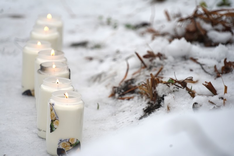 Am Ende stellte eine Gruppe aus unserer Klasse ewige Lichter am Gedenkstein auf, viele Besucherinnen und Besuchern legten Blumen dazu.