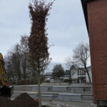 Obwohl der Freitagmorgen grau und regnerisch war, setzten die Klimalots:innen und die 8c Pflanzen in die Beete und die neu angelegten Flächen des neugestalteten Schwarzen Hofes. Während die Garten- und Landschaftsbauer die große Sumpfeiche zwischen Pavillon und Haupteingang sowie Felsenbirnen gesetzt hatten, übernahmen die Schülerinnen und Schüler nun unter Anleitung die ergänzenden Pflanzarbeiten. Sie brachten Bodendecker, Rosen am neuen Rankgitter und Hortensien in die vorbereiteten Flächen ein.