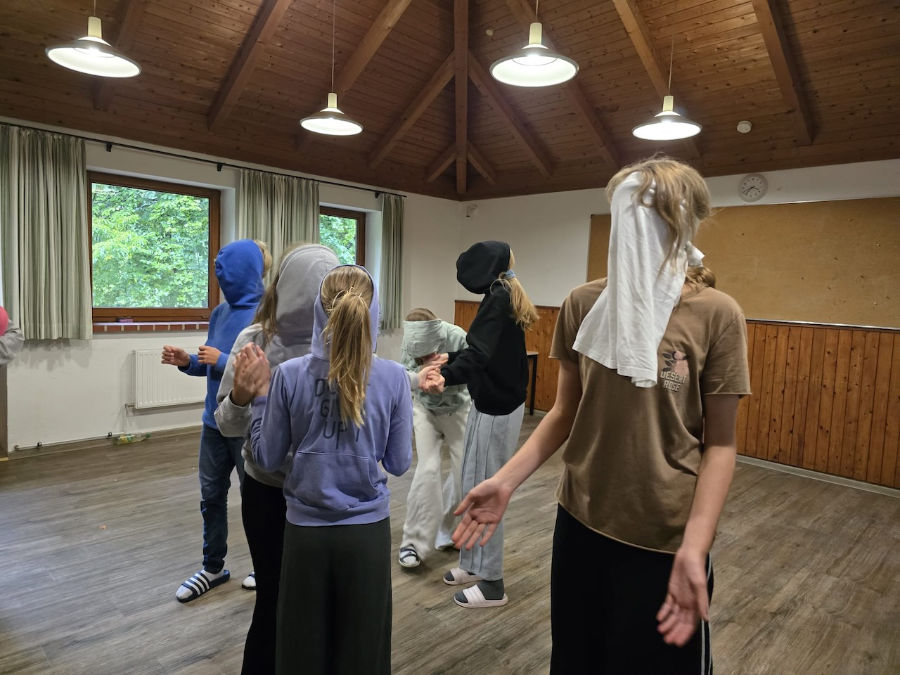 Ein weiteres Spiel war sehr spannend und schwierig zu lösen. Wir mussten blind unseren Platz im Kreis wiederfinden und durften währenddessen nicht mit den anderen reden. So mussten wir uns also davor möglichst genau absprechen. Obwohl das gar nicht so einfach war, hatten wir zum Schluss alle unseren Platz wiedergefunden.