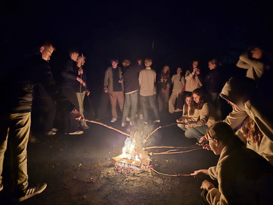 Um ca. 20:45 Uhr sind wir dann nochmal gemeinsam zur Lagerfeuerstelle gegangen. Wir hatten auch eine Musikbox und durften Liedwünsche abgeben, viele haben auch getanzt! Natürlich ist ein Lagerfeuer kein Lagerfeuer, wenn es nichts zu Essen gibt! Wir hatten Marshmallows und die 8b, die ebenfalls dort war, hatte Stockbrot. Wir haben alles miteinander geteilt. Anfänglich lief es noch nicht so gut, oft sind die Marshmallows verbrannt, doch nach einer gewissen Zeit hatten wir den Dreh raus.