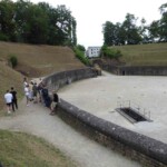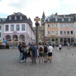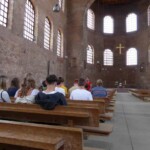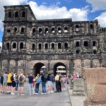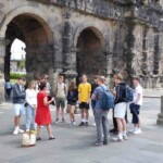 Verschiedene Wahrzeichen des römischen (und mittelalterlichen) Trier wollten in den kommenden Tagen erkundet werden: Die Porta Nigra, die Kaiserthermen, die Barbarathermen, die Römerbrücke, das Amphitheater, der Dom, der Marktplatz… Mal mit ganz klassischer Führung, mal als besonderes Erlebnis mit „antiken“ Begleitern. Natürlich gehörte auch ein Besuch im Landesmuseum dazu, um z.B. einmal einen Blick auf das rekonstruierte Trier der römischen Kaiserzeit zu werfen und zu erfahren, wie aus den ursprünglichen Bewohnern eigentlich so echte Römer wurden. Ein besonderes Erlebnis bietet die Konstantinsbasilika: Hier kann man dort stehen, wo vor 1700 Jahren einer der berühmtesten Kaiser des römischen Reiches saß (Trier war zeitweise kaiserliche Residenzstadt!).