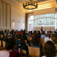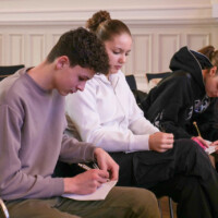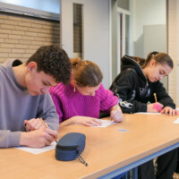 Im Workshop „Film“ wurden verschiedene Videos im Gebäude gefilmt, die zu einem in Theresienstadt geschriebenen Gedicht passen sollten. Die geschilderte Situation stellte den Moment dar, in dem die Namen der Kinder aufgerufen wurden, die deportiert werden sollten. Die Schüler*innen versuchten, mit den Filmen die Gefühlslage der Kinder einzufangen. Bei dem Workshop „kreatives Schreiben“ sollten alle Schüler*innen erstmal vier Minuten über etwas schreiben, was sie gerade beschäftigt.