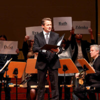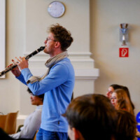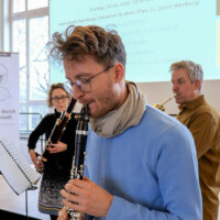 Der Workshop „Schauspiel“ wurde vom TV- Schauspieler Roman Knizka geleitet. Dort haben die Schüler*innen einen Auftritt aus der Kinderoper „Brundibár“ geprobt, der in der Laeiszhalle vorgeführt werden sollte. Roman Knizka hat seine Schauspiel- und Sprechtipps an die Neuntklässer*innen weitergegeben und sie während der Probe motiviert.