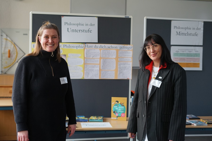 Dieses Jahr neu im Programm: Philosophie stellte seine Angebote in Unter-, Mittel- und Oberstufe vor. In kurzen Gesprächen und kleinen Impulsen konnten kleine und große Besucherinnen und Besucher philosophische Fragen ausprobieren, etwa in einem Gedankenexperiment oder bei der Frage, was Freundschaft eigentlich ausmacht.