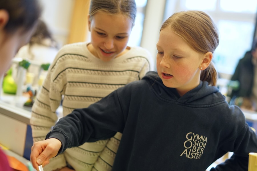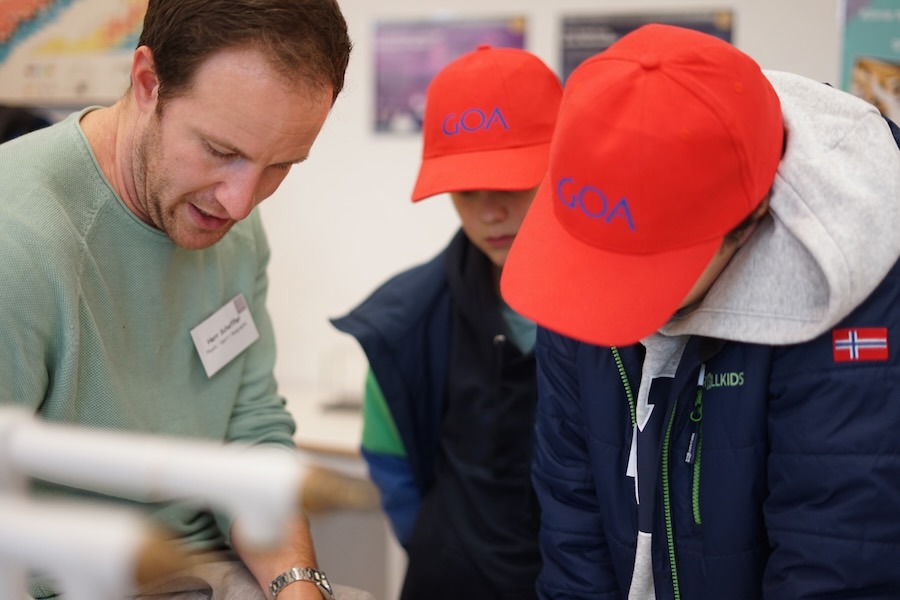 Wie in den vergangenen Jahren führten die GOA-Guides anschließend durch die Gebäude. In den Fachräumen und Trakten konnten Besucherinnen und Besucher Unterrichtsatmosphäre erleben, Schülerarbeiten ansehen und mit Lehrkräften sowie Schülerinnen und Schülern ins Gespräch kommen. Besonders gefragt waren auch die Klassenlehrerteams der kommenden fünften Klassen: Alle Teams waren vor Ort und standen für Fragen und Austausch bereit.