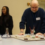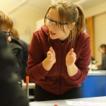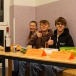 Es gab auch viele Stationen zum Mitmachen und Zusehen: Die Englisch-Fachschaft hatte ein Role-Play vorbereitet, im Latein-Raum inszenierten Schülerinnen und Schüler die Schule im alten Rom. Interessierte Viertklässler konnten an einer Geographie-Rallye teilnehmen oder mit dem Geschichtslehrer Herrn Dr. Schröder Hieroglyophen stempeln. Während letzteres ganz analog durchgeführt wurde, konnte in der Musik digital gearbeitet werden: Herr Dörpholz bot Songerarbeitung mit Garageband am iPad an. In den Naturwissenschaften im Hauptgebäude gab es besonders viel zu sehen und zu erleben: Gurken wurden unter Strom gesetzt, man konnte an der NaWi-Rallye teilnehmen, in den Räumen von Physik und Chemie gab es viele Experimente zum Ausprobieren und Staunen. In der Caféteria und im GOApuccino wurde für das leibliche Wohl der Besucherinnen und Besucher gesorgt und wer nach einem Stück Kuchen ein bisschen Bewegung brauchte, der konnte in der neuen Sporthalle Fußball und Hockey spielen oder einen Parkour bezwingen.