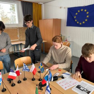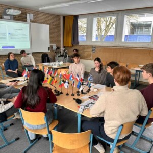Interessante Knobelaufgaben, intensive Absprachen und ein Wettlauf gegen die Zeit – diese Schwerpunkte machten das Escape Game “Unlock Europe” zu einer mitreißenden Ergänzung im PGW-Unterricht an unserer Schule. Durchgeführt von Alisa Rieth mit dem FSJler Youri als Unterstützung, beide von der Bundeskanzler-Helmut-Schmidt-Stiftung, entfaltete sich das Planspiel als ein erlebnisreicher Einblick in die Welt der Friedens- und Sicherheitspolitik Europas. Als Schülerinnen und Schüler des PGW-Profils bei Herrn Schröder, hatten wir die einzigartige Möglichkeit, in die Rollen von Staats- und Regierungschefs Europas zu schlüpfen und dabei drängende politische Herausforderungen zu bewältigen.