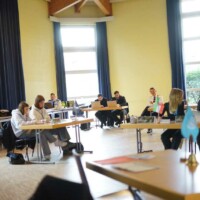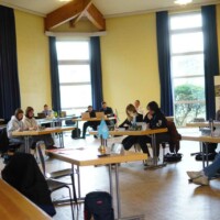 Nach der Lagebesprechung haben wir versucht, eine Resolution zu verabschieden, die Maßnahmen zur Beendigung der Krise vorschlägt. Dazu haben wir uns in kleinen Gruppen beraten und Kompromisse gesucht. Das war gar nicht so einfach, denn jede Gruppe wollte ihre eigenen Interessen wahren und die anderen beeinflussen. Außerdem mussten wir darauf achten, dass die Resolution von mindestens neun Gruppen unterstützt wird und kein ständiges Mitglied sein Veto einlegt.